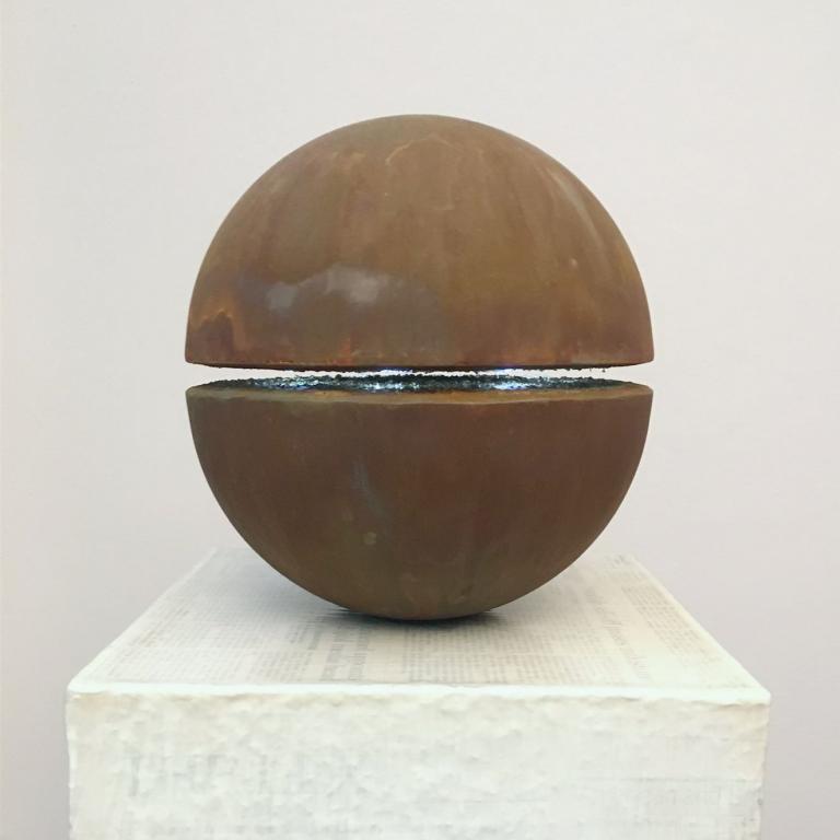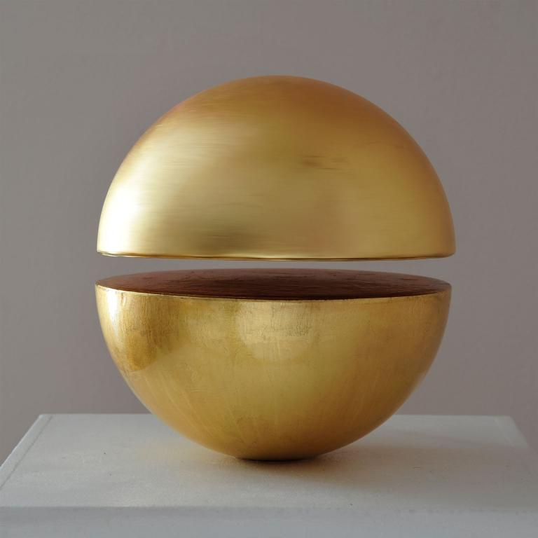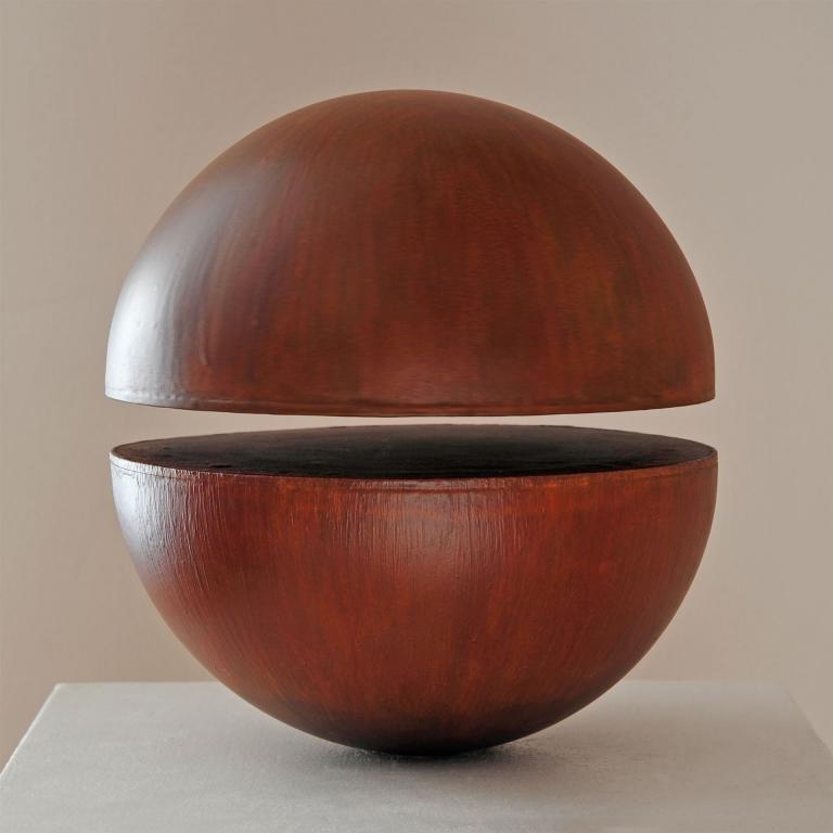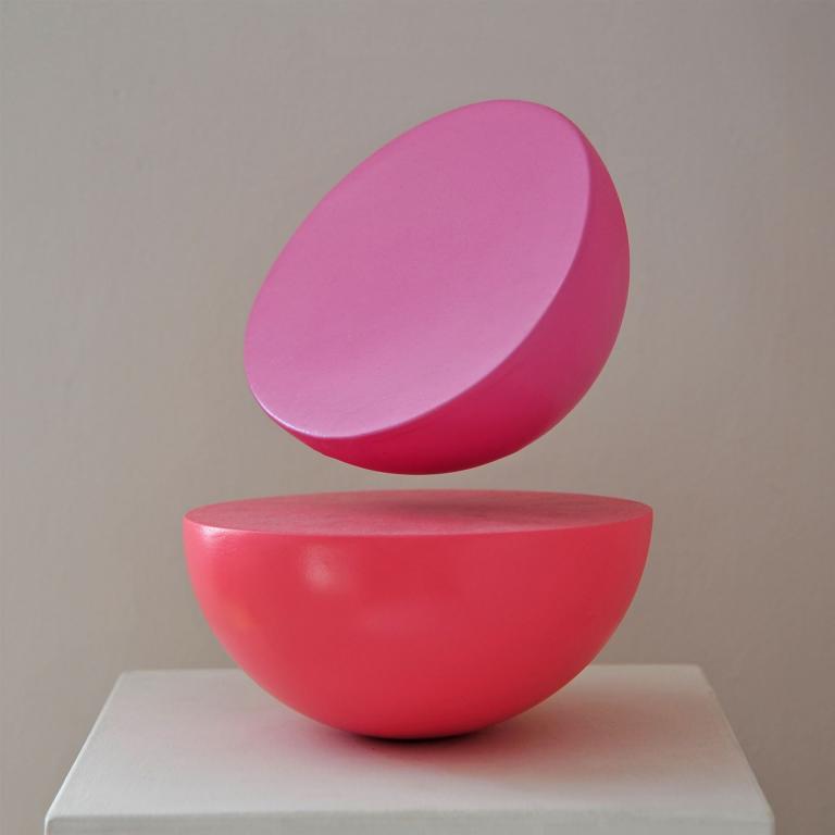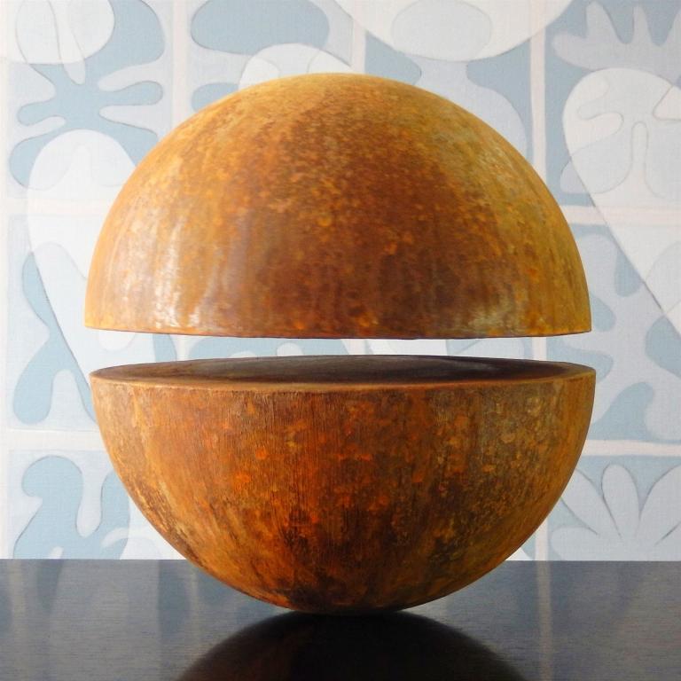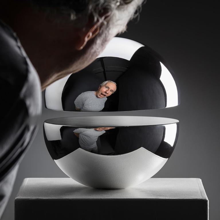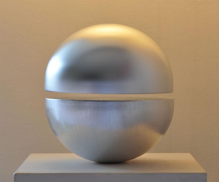 Aus zwei Kugeln wird eine, mittig halbiert. Die eine Hälfte steht, die andere schwebt. Nun hat auch ein ordentlicher Windstoß kaum eine Chance, die schwebende Hälfte zu stürzen.