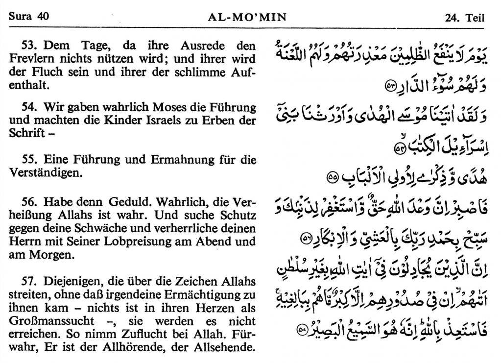 Text, Koran: 40. Sure, Verse 53 bis 57