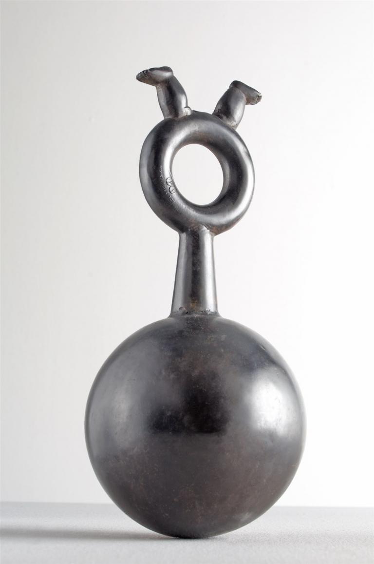 Im Gepäck hatte er Bronzen der Ashanti. Eine dieser Bronzen begeisterte mich ganz besonders: Es war eine acht Zentimeter hohe menschliche Figur, deren Beine zu einem Spitz zusammenliefen. Die Arme waren durch einen gebogenen Draht verlängert, an dessen Enden Bronzewürfel hingen, die sechs bis sieben Zentimeter unter die Beinspitze reichten.