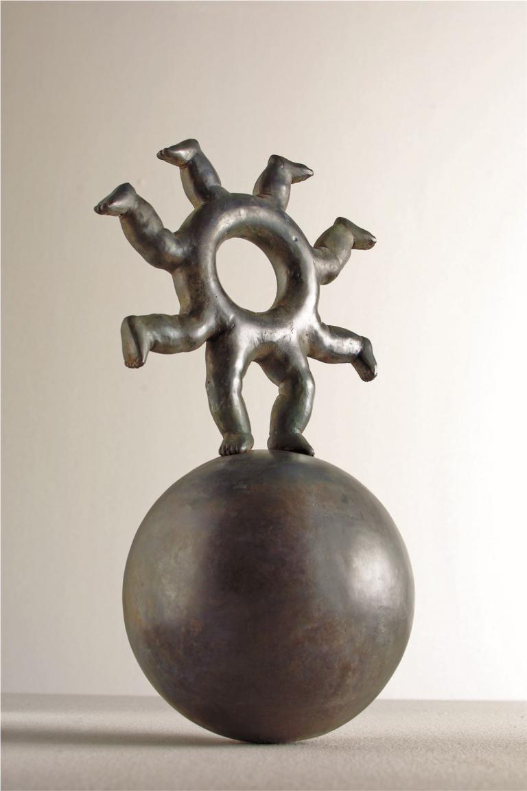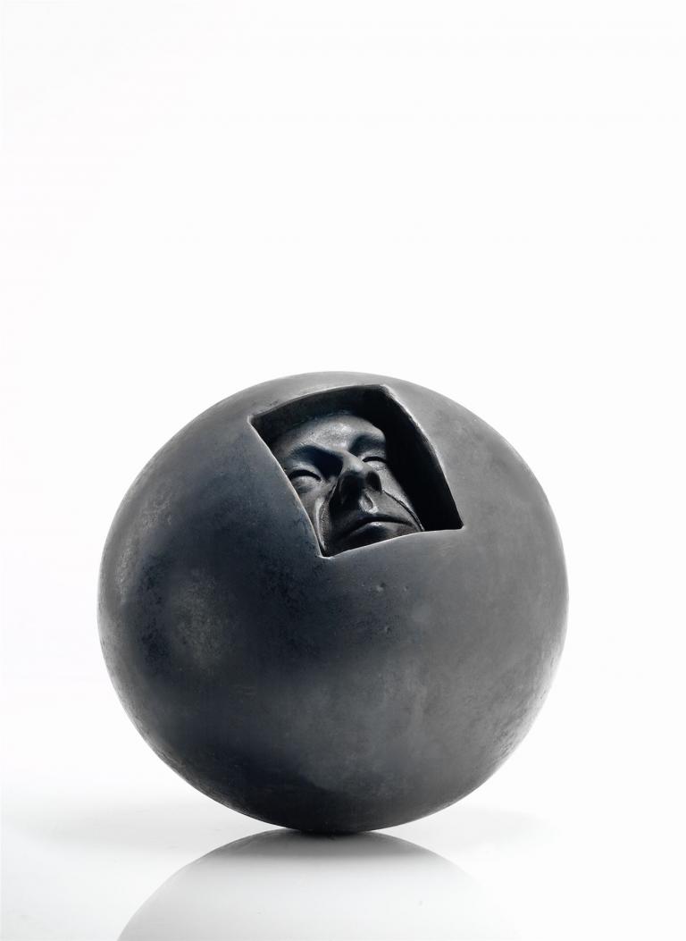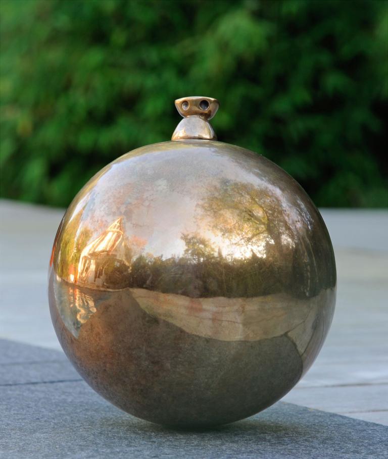 Je schwerer die Bronze ist, desto leichter sollte sie wirken. Und je leichter die Kugel wirkt, umso stärker dringt ihre Masse ins Bewusstsein. Beispiel Le Petit Prince sur son astéroïde B612: J74, 2003, 20cm Bronze-Kugel (Nr.1) und J120, 2011, 55cm Bronze-Kugel (Nr.2).