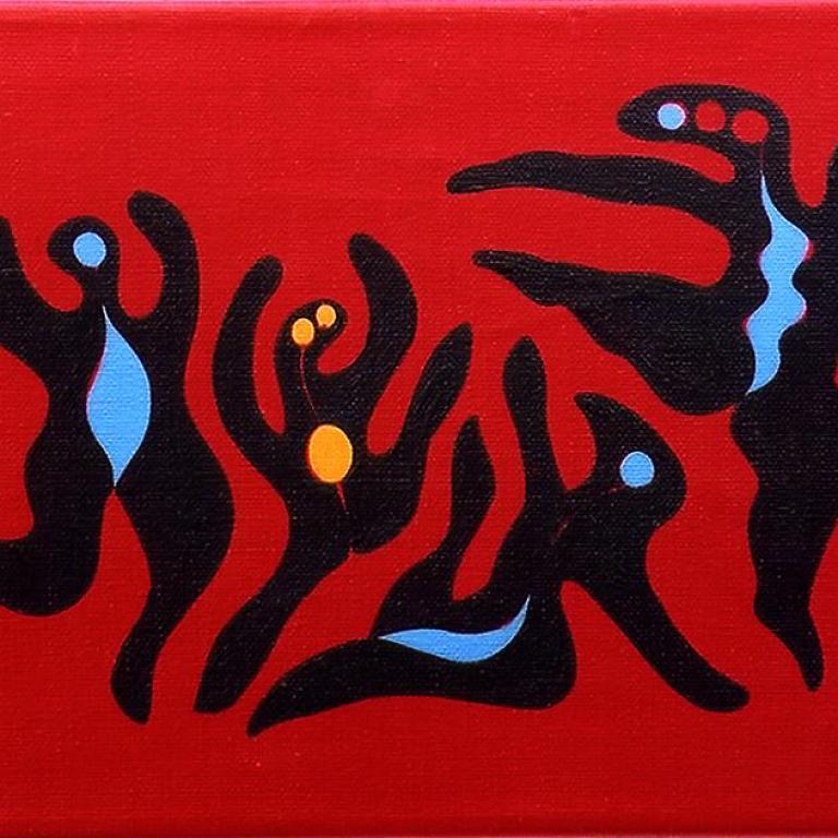 Bilder mit menschlichen Figuren, deren Zentrum nicht existent ist, sind ursprünglich aus einer handwerklichen Übung entstanden, haben aber schnell eine Eigendynamik entwickelt. Diese Figuren sind mehrheitlich mit dem Graphitstift in einem einzigen Strich auf die Leinwand oder die Holzpalette skizziert.