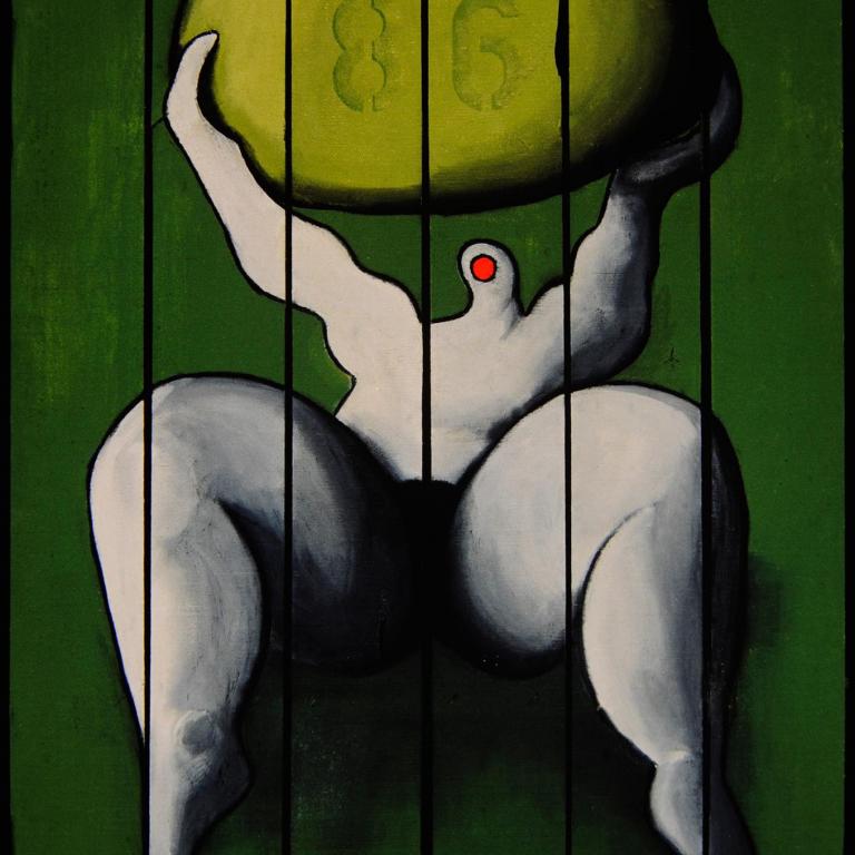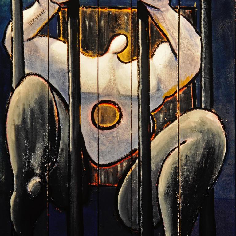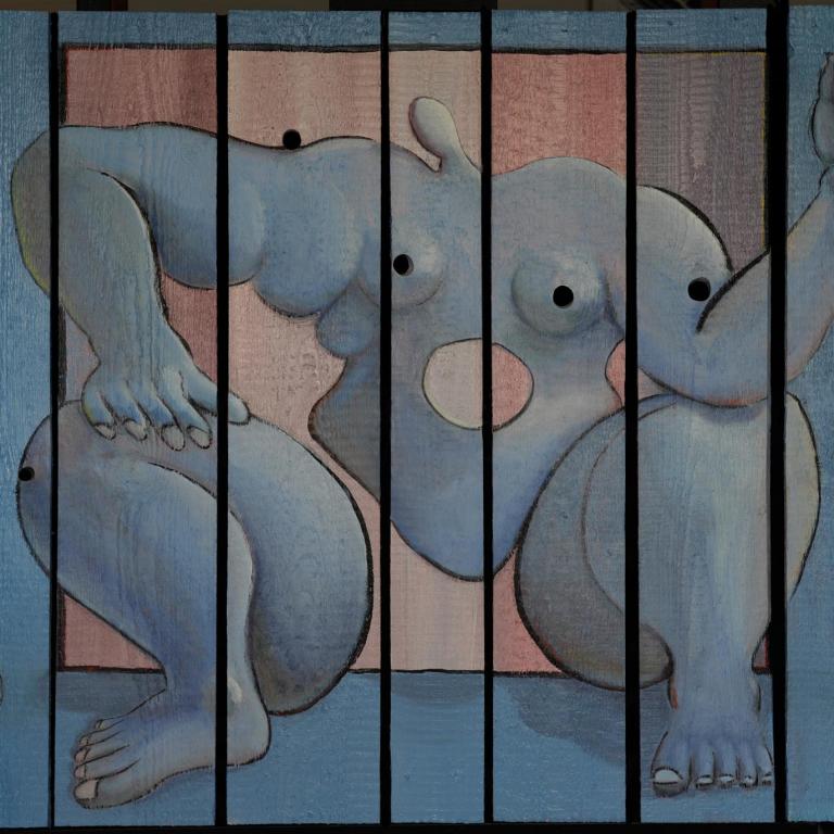 Das zweite, das dem Bild auf der Holzpalette einen speziellen Charakter verleiht, sind die nicht vorhandenen, die nicht bemalten Flächen, d.h. die Astlöcher und die Spalten zwischen den Brettern.